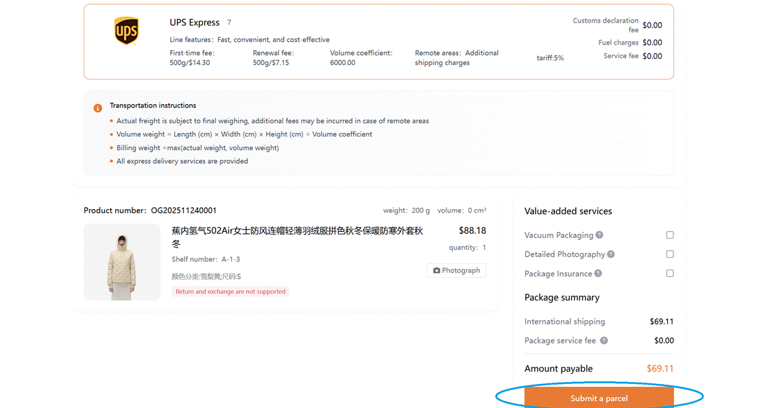 overseas shipping (Steps 6–9) or purchase more products and combine them before