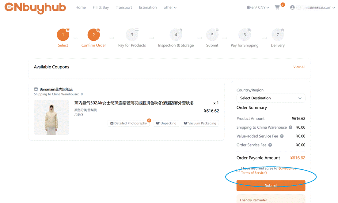 warehouse. After warehousing, they will appear under “My CNBuyHub” → “My Warehouse.”