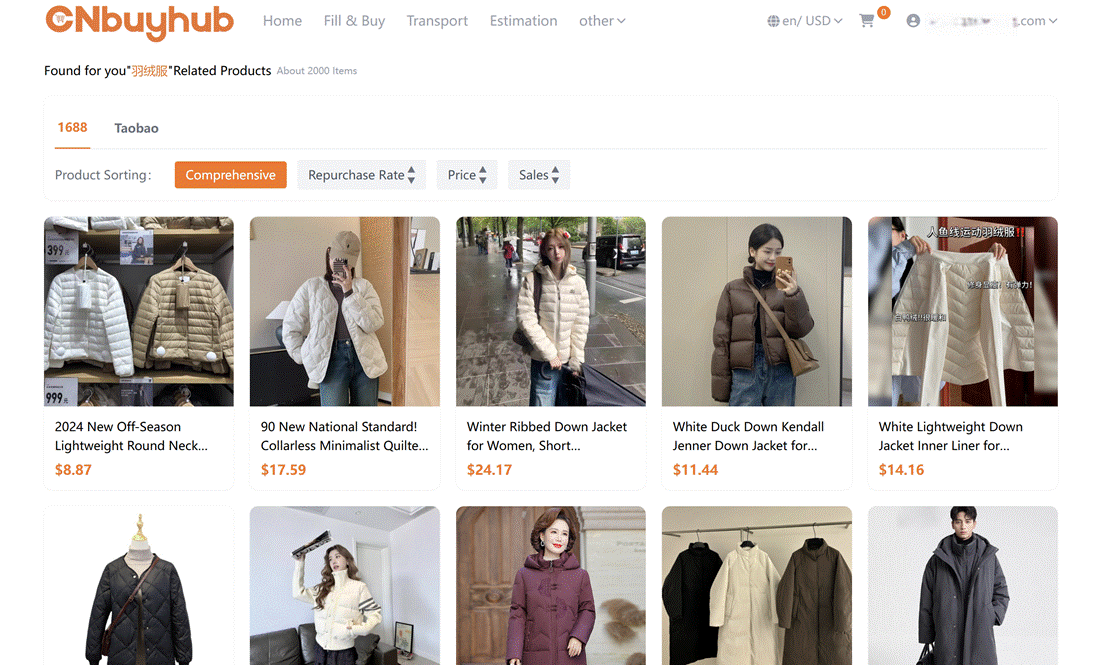 of products on Taobao, Tmall, and 1688.com. You can directly select the